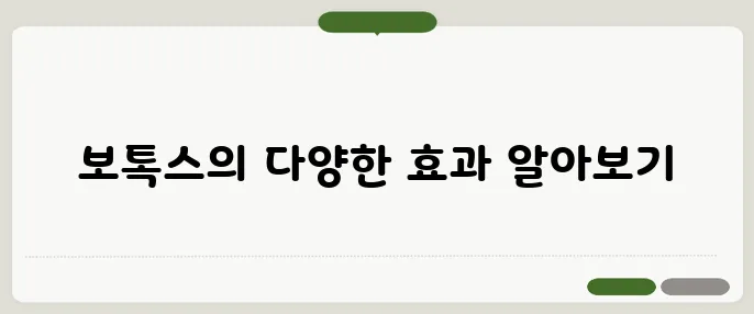 보톡스는 신경전달물질을 차단하여 근육의 수축을 억제하는 효과가 있습니다. 이를 통해 턱 주변의 긴장을 완화시키고, 결과적으로 통증을 줄여줍니다. 이런 방식으로 치과 보톡스는 다양한 증상 개선에 기여할 수 있습니다.